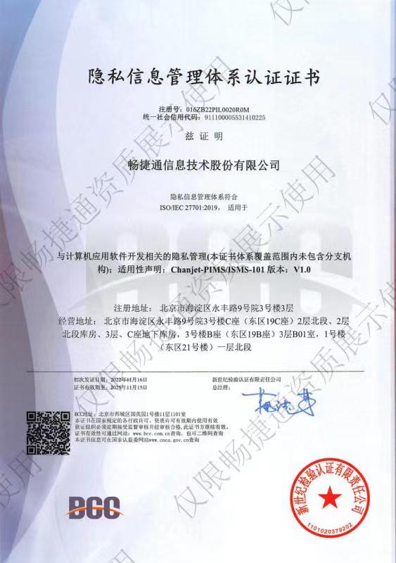 天津用友軟件得知,近日,暢捷通獲得了ISO27701隱私信息管理體系認證,這是繼ISO27001信息安全管理體系認證之后,暢捷通在隱私與信息安全領(lǐng)域獲得的又一項權(quán)威安全認證。此項認證的取得也標志著暢捷通在數(shù)據(jù)管理、隱私保護方面達到了國際標準!