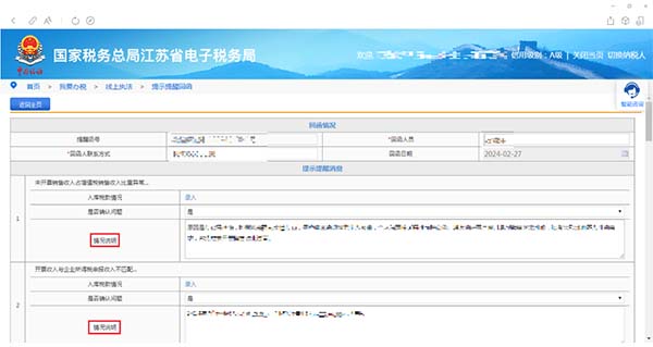 3、在反饋界面,納稅人可以根據(jù)實(shí)際自查情況,進(jìn)行風(fēng)險(xiǎn)自查反饋,填寫情況說(shuō)明。