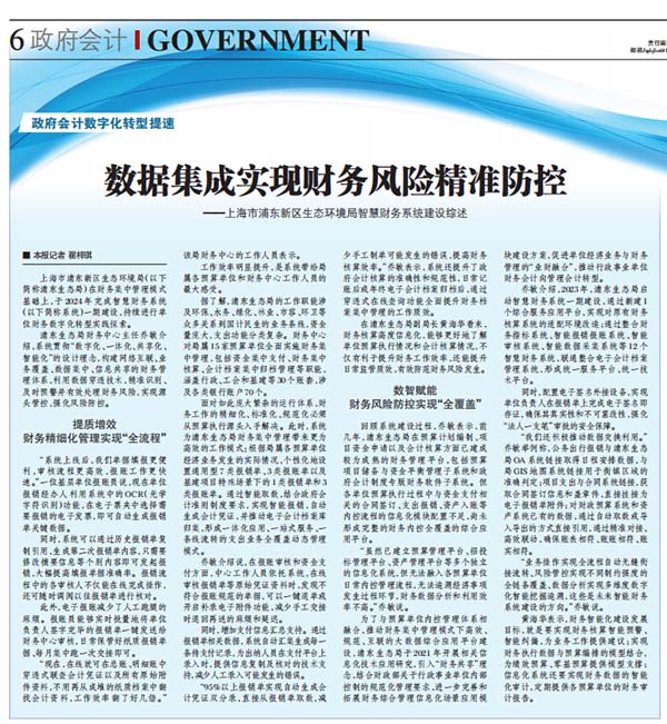 在浦東生態(tài)局副局長(zhǎng)黃海華看來,財(cái)務(wù)核算高度信息化,能夠更好地了解單位預(yù)算執(zhí)行情況和會(huì)計(jì)核算情況,不僅有利于提升財(cái)務(wù)工作效率,還能提升日常監(jiān)管質(zhì)效,有效防范財(cái)務(wù)風(fēng)險(xiǎn)發(fā)生。